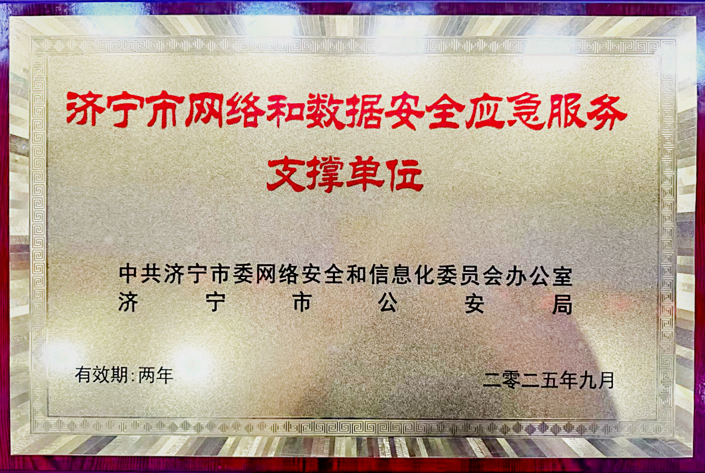 济宁政金大数据集团有限公司成功入选第三届“济宁市网络安全应急服务支撑单位”。此项评选每两年举办一次,围绕企业综合实力、重大网络安全事件应对能力、应急服务规范性等多个维度进行严格遴选,旨在选拔一批技术实力强、社会责任感突出、服务规范的专业机构,共同构建更加牢固的网络安全保障体系,全面提升本市网络安全应急处理能力。